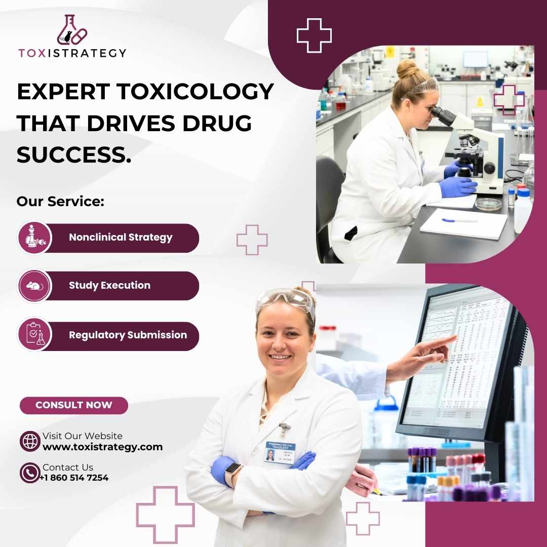Toxistrategy delivers specialized toxicology services pharma companies rely on to streamline nonclinical safety, accelerate IND/CTA timelines, and reduce regulatory risk. Expert toxicologists design and interpret studies tailored to your molecule, providing clear data narratives that support confident decision‑making and successful global submissions. Partner with Toxistrategy to move promising therapies forward.